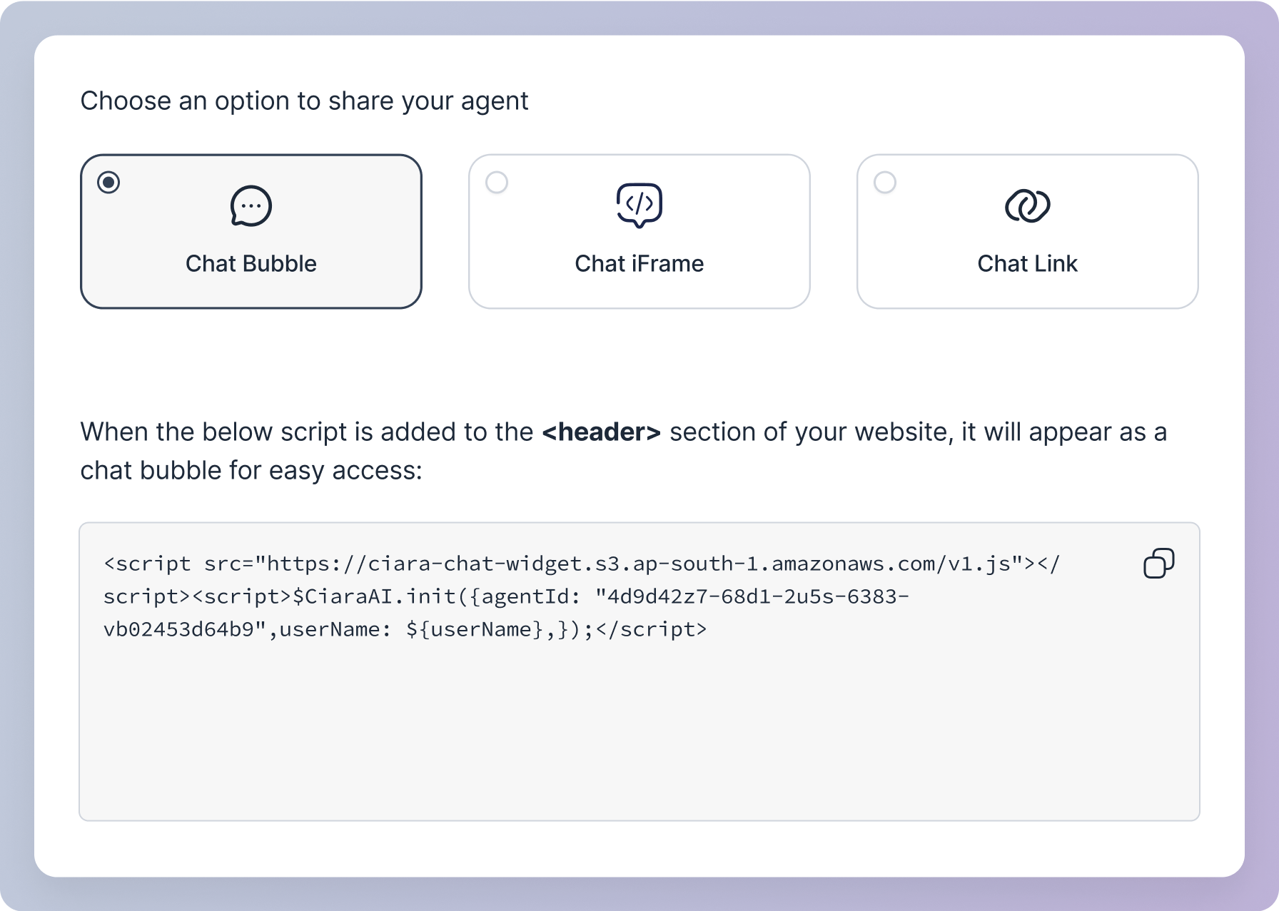 Once you have created an AI chat agent, you can embed or share it in various places for your users to access.