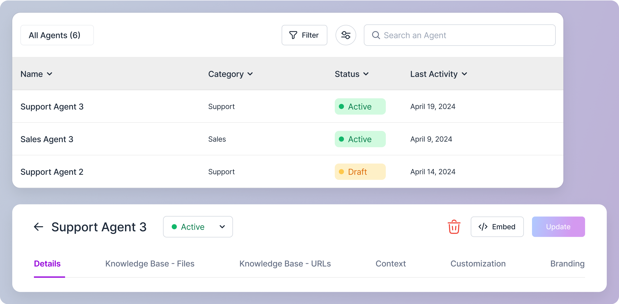 - Archived: The agent is no longer in use. You might choose to archive an agent if you no longer need it or want to keep it for reference purposes.