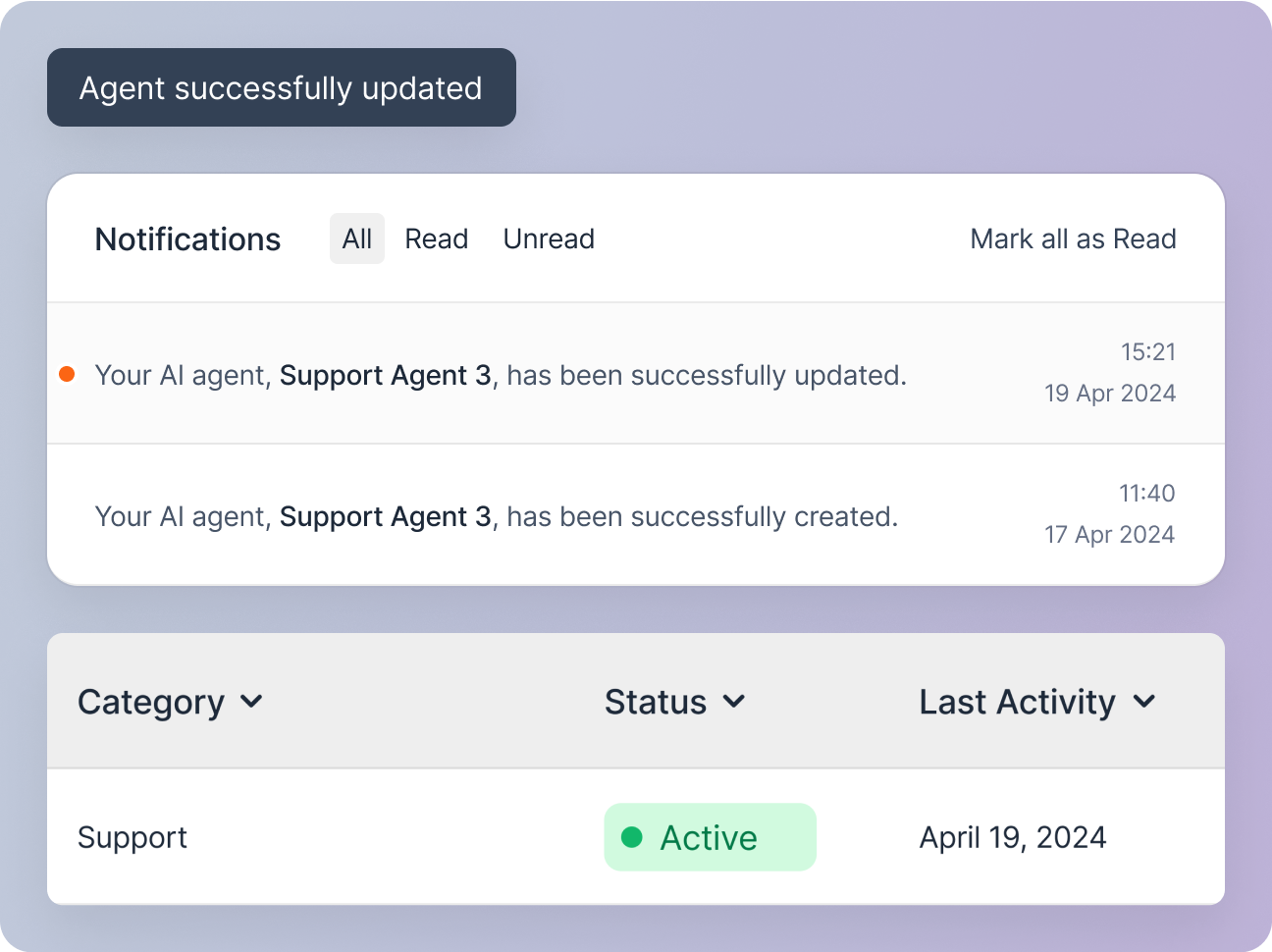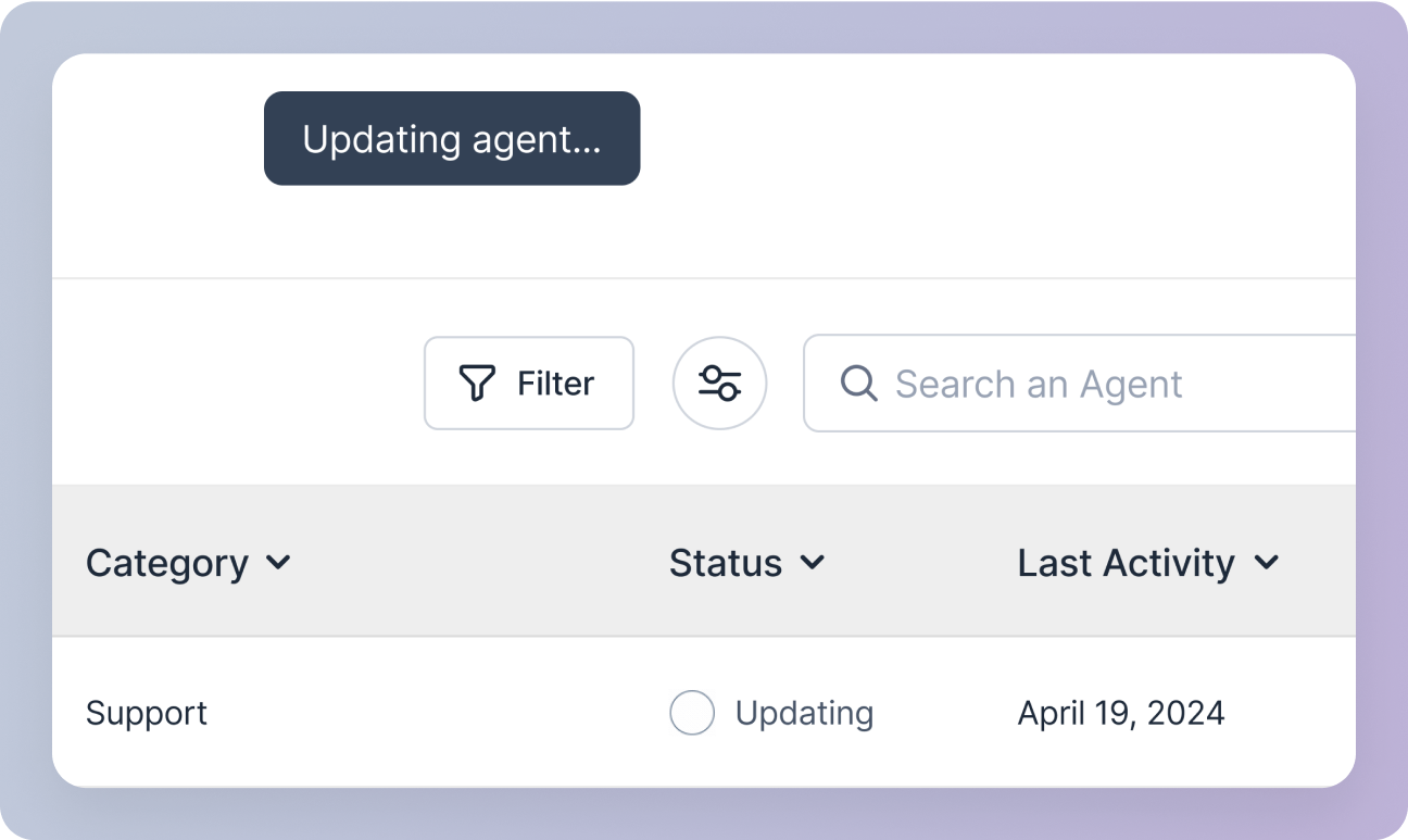 - You will be redirected to the agent management screen, where the agent status will display as “Updating” in the agents table.