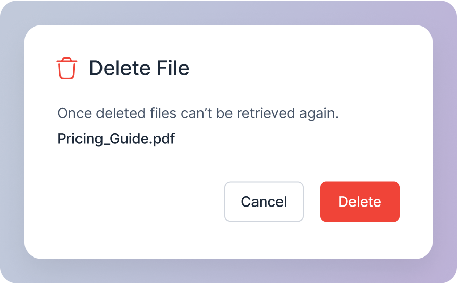 You will see a confirmation modal asking you to confirm the deletion. This action is irreversible, and once deleted, the file cannot be retrieved. So please ensure you want to delete the file.