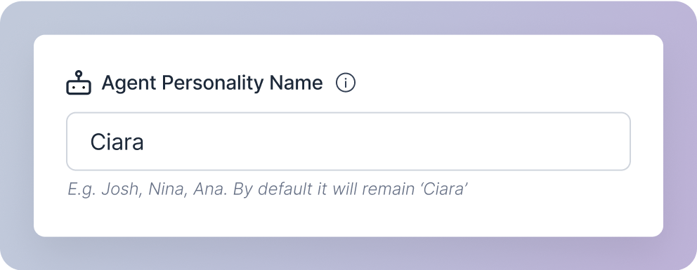 When creating a sales agent, another important detail to provide is the Agent Personality Name. This name is how the agent introduces itself to your customers.