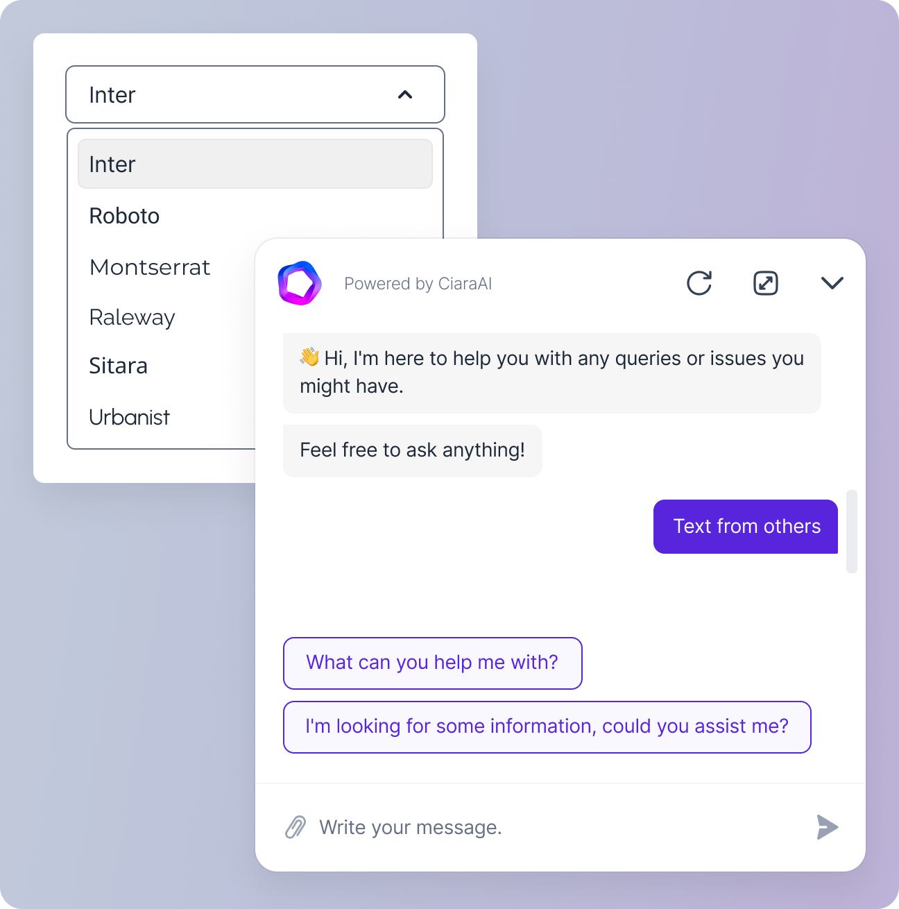 Inter, Roboto, Montserrat, Raleway, Sitara, and Urbanist. If no font is selected, Inter will be used by default.
