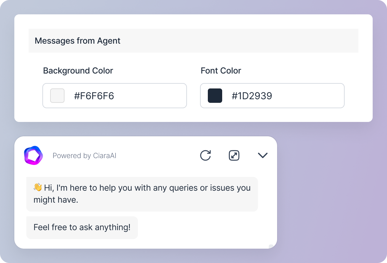 This section lets you personalize the look and feel of your sales agent’s chat interface, creating a branded experience for your customers.