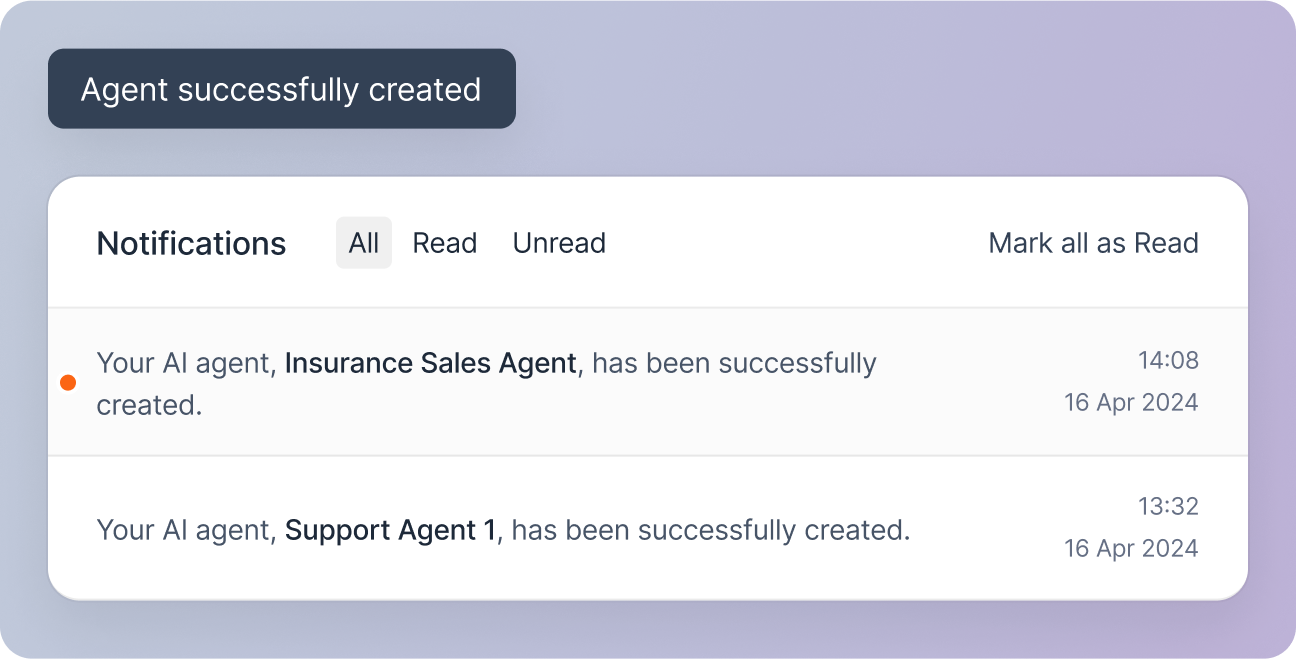 Create agent button to start the creation process. This button will be enabled only after all required details are provided.