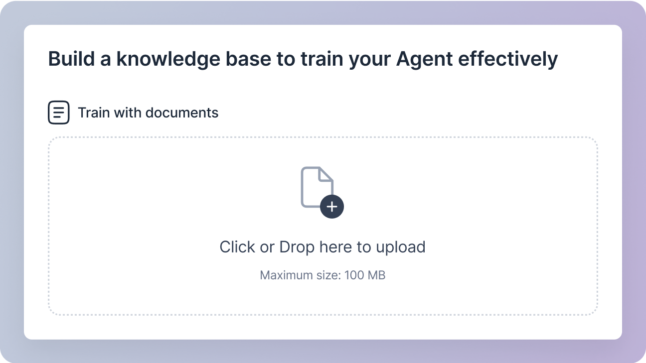 Users can input data into the Knowledge Base by uploading files. You can upload files either by clicking inside the upload area or by dragging and dropping files from your device. Multiple files can be uploaded at once.